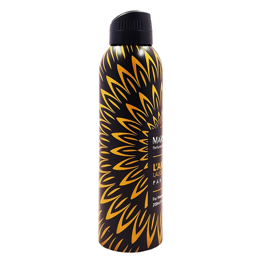 محصول فوق اسپری بدن زنانه مارسالا با رایحه محبوب لامور حجم 200 میل می باشد . رایحه ای ملایم و شیرین دارد و به سبب بوی شیرین و ملایمی که دارد ، توصیه میگردد که در روزهای گرم سال استفاده شود . هدف از تولید رایحه ی این محصول که با نام عزت ابدی نام گذاری شده ، ایجاد حس سربلندی و ابدی بودن شخصیت کسانی است که از این رایحه استفاده می کنند.. ماندگاری این اسپری 48 ساعت می باشد و میتوان حتی بعد از گذشت یک روز رایحه آن را روی لباس و بدن احساس کرد . این محصول دارای سری چرخشی بصورت on , off می باشد . اسپری بدن مارسالا ضد حساسیت بوده و دارای اسانسی قوی است .
