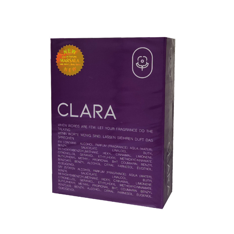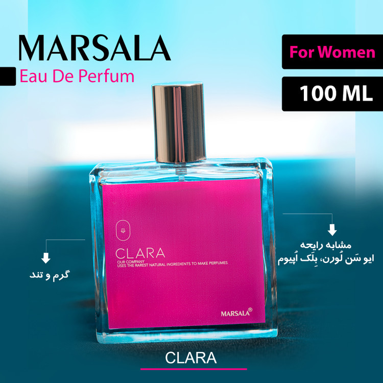 ادوپرفیوم زنانه CLARA رایحه مشابه ادکلن Yves Saint Laurent Black opium است که در حجم 100 میل توسط برند مارسالا در بازار عرضه شده است