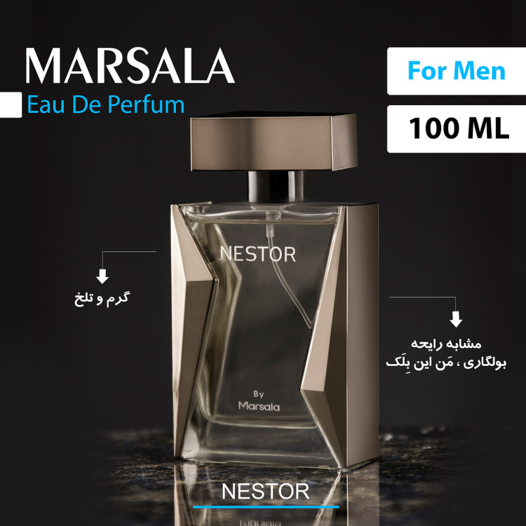 ادوپرفیوم مردانه NESTOR رایحه مشابه ادکلن Bvlgari Man In Black است که در حجم 100 میل توسط برند مارسالا در بازار عرضه شده است .