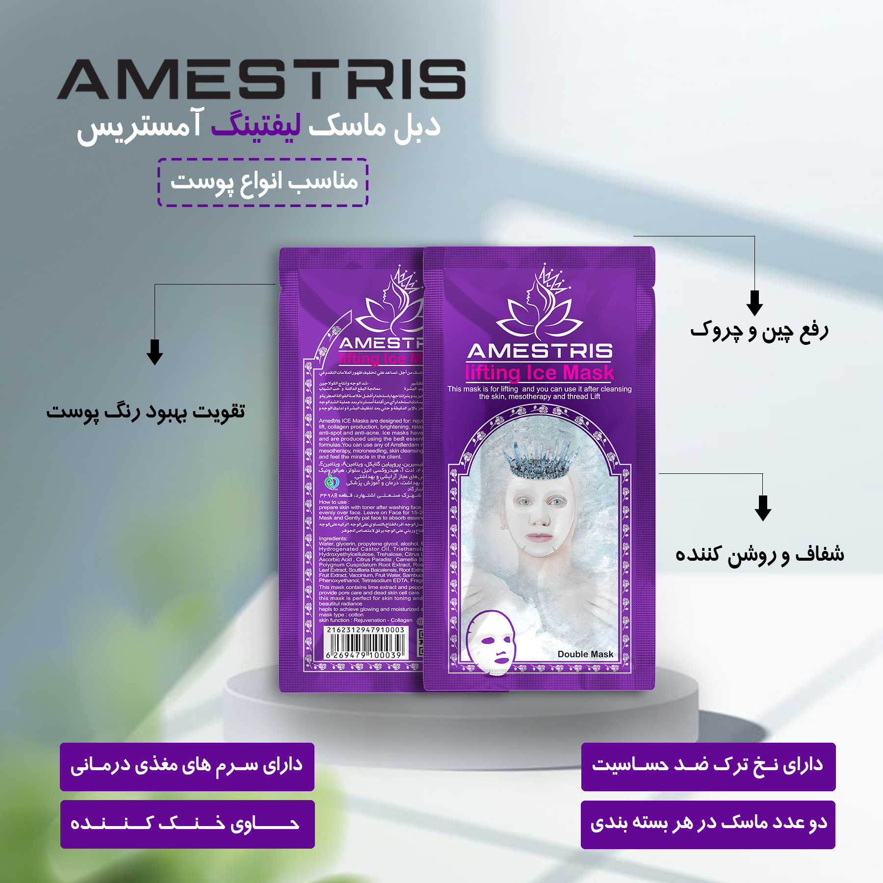 ماسک صورت دبل آیس آمستریس مدل لیفتینگ وزن 25 گرم