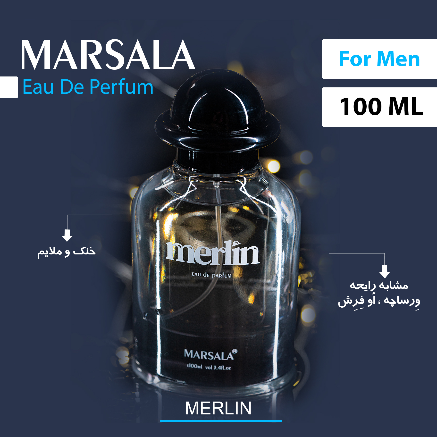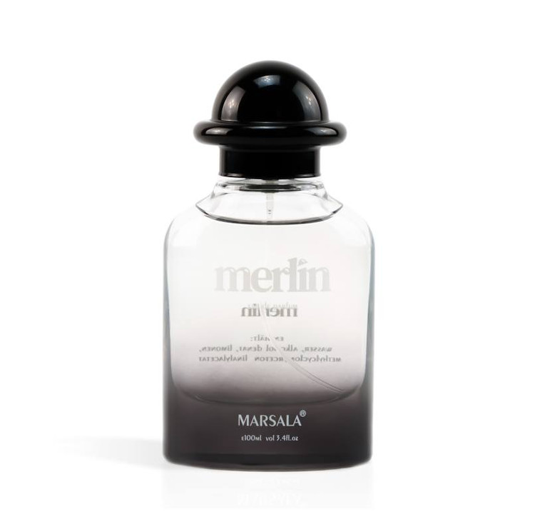 ادوپرفیوم مردانه MERLIN رایحه مشابه ادکلن Versace Eau Fraiche است که در حجم 100 میل توسط برند مارسالا در بازار عرضه شده است .