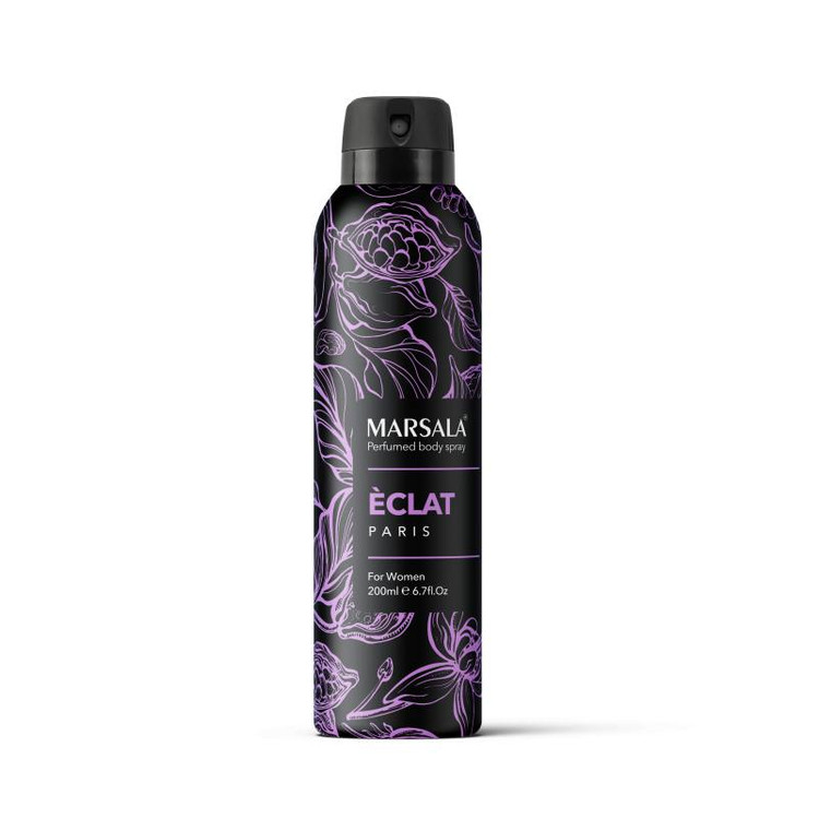 محصول فوق اسپری بدن زنانه مارسالا با رایحه محبوب اکلت حجم 200 میل می باشد . نوع رایحه این محصول شیرین و خنک است .ماندگاری این اسپری 48 ساعت می باشد و میتوان حتی بعد از گذشت یک روز رایحه آن را روی لباس و بدن احساس کرد . این محصول دارای سری چرخشی بصورت on , off می باشد .