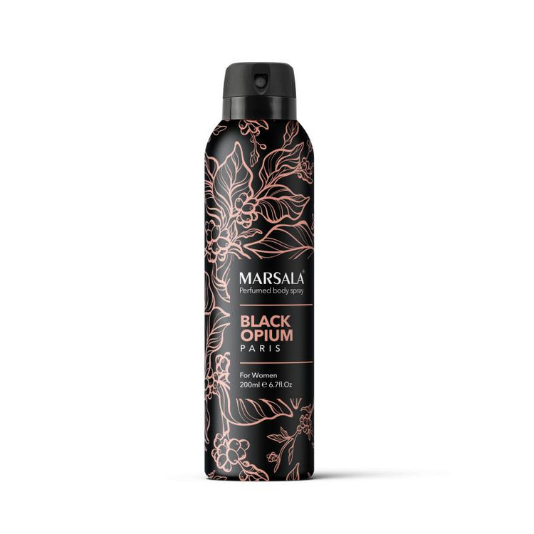 محصول فوق اسپری بدن زنانه مارسالا با رایحه محبوب بلک اوپیوم حجم 200 میل می باشد . نوع رایحه این محصول گرم و تند است .ماندگاری این اسپری 48 ساعت می باشد و میتوان حتی بعد از گذشت یک روز رایحه آن را روی لباس و بدن احساس کرد . این محصول دارای سری چرخشی بصورت on , off می باشد .